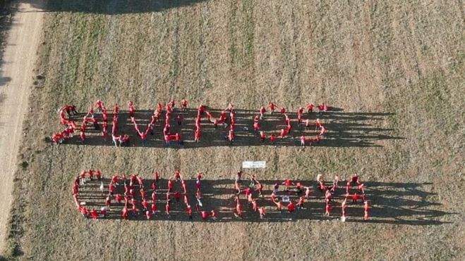 Alrededor de 150 personas participaron este viernes en una actividad reivindicativa que ha consistido en formar todos juntos el lema “Salvemos Canal Roya” en el entorno natural, y desplegar la pancarta "Sos Pirineo", en un anticipo de una importante movilización que se está preparando para el mes de abril.