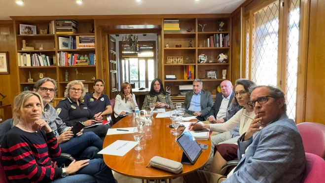 Por parte del Ayuntamiento, han asistido a la reunión la alcaldesa de Huesca, Lorena Orduna, los teniente de alcalde, la concejal de seguridad ciudadana y el concejal de servicios generales, el director de comunicación y la jefa de gabinete, junto con el jefe del servicio de prevención, extinción de incendios y salvamento y la intendente de la policía local de Huesca,