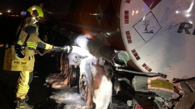 El Sepeis ha agregado que, pese a los daños sufridos en la estructura por el camión cisterna, no ha habido derrame de líquido, sin embargo, ha sido necesario cortar la autovía hasta que se ha podido desplazar el tráiler a una zona segura.
