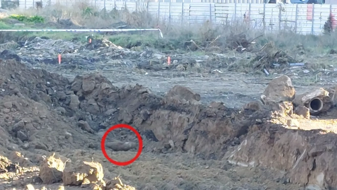 Operarios que se encontraban trabajando en el proceso de urbanización del polígono han hallado este artefacto explosivo que pudiera estar en activo, lo que ha motivado la alarma por parte de los responsables de los trabajos.
