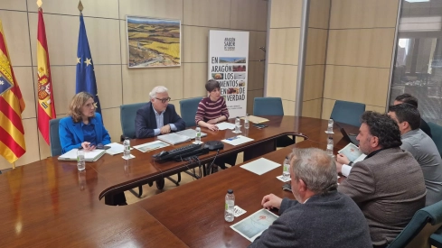 El consejero de Agricultura, Ganadería y Alimentación en funciones, Javier Rincón, junto a la directora general de Calidad y Seguridad Alimentaria, Aitziber Lanza, se ha reunido este miércoles con representantes de la Diputación Provincial de Huesca para avanzar en la definición de un marco de colaboración entre ambas instituciones frente a la dermatosis nodular contagiosa (DNC), que ha afectado a dos explotaciones en Borrastre, en el término de Fiscal. Durante el encuentro, la DPH ha trasladado su disposición a asistir en todas aquellas actuaciones que el Departamento considere necesarias para reforzar la lucha contra la enfermedad y sus consecuencias.