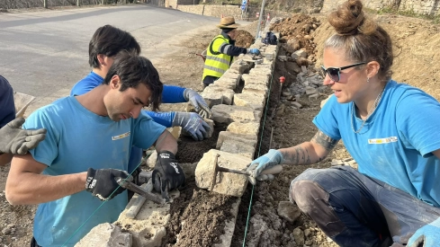 En los tres talleres previos, una treintena de personas de Aínsa y de Sobrarbe han tenido ocasión de aprender un oficio y de contribuir a la restitución del patrimonio de la localidad. Todos ellos estuvieron enfocados en la recuperación de accesos en la cara norte de la muralla, abarcando la reconstrucción de muros, el empedrado de caminos y la iluminación, entre otras intervenciones que han logrado crear un itinerario alternativo para subir caminando hasta el casco histórico.