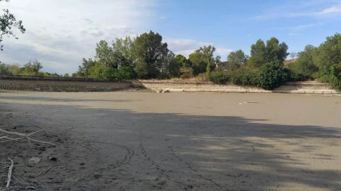 La alberca de Cortés se encuentra vacía y con decenas de peces muertos tras el desembalse realizado debido a que la sequía que ha dejado el pantano de Arguis con el caudal ecológico.