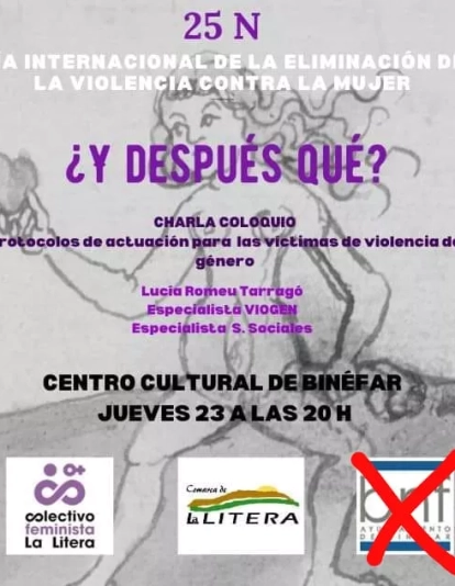 La alcaldesa de Binéfar, Patricia Rivera, ha rechazado tajantemente la acusación que desde la oposición se ha realizado con motivo de la negativa del Centro Cultural para una charla con motivo del Día Internacional de la Eliminación de la Violencia contra la Mujer, bajo el título "¿Y después, qué?", que finalmente será impartida por Luc´`ia Romeu Tarregó en la Asociación Binéfar 77.
