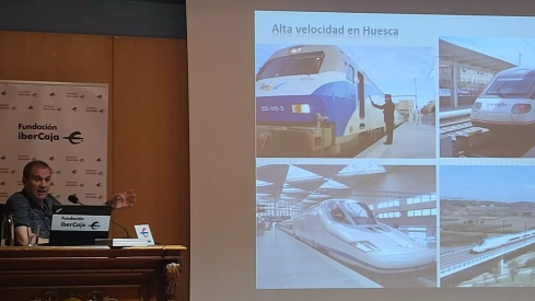 En el Centro Cultural de Ibercaja, y tras la presentación del periodista Julio Alvira, experto en infraestructuras y particularmente en ferrocarriles, se ha remontado a las raíces, a 1928 en que se estrenó la línea Zaragoza-Canfranc, tan sólo cinco años después de la primera, la de Barcelona-Mataró. Ha remembrado el Manifiesto de los Aragoneses a la Nación Española reclamando el paso por Arañones en 1853. Y ha reivindicado la condición trinitaria del Canfranc, con el tren, el túnel hoy moderno del Somport y la calidad paisajística. Ha resumido un sentimiento y un pragmatismo: "Reivindicamos el carácter internacional pero al menos llegan los trenes españoles".