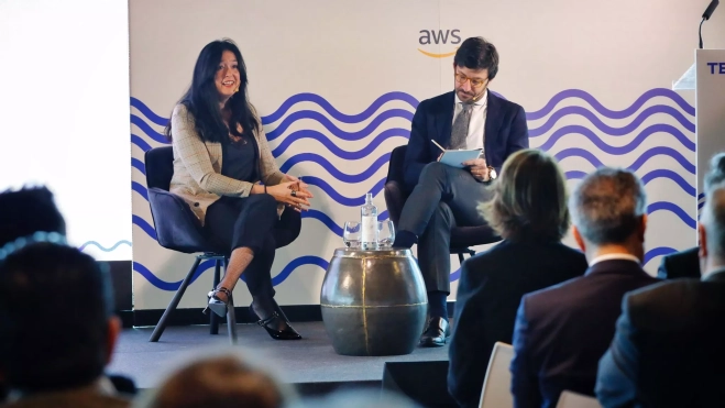 La alcaldesa, Lorena Orduna, ha participado en la jornada Tech4Water, durante la cual Amazon Web Services ha suscrito el acuerdo de colaboración con el Ayuntamiento de Huesca por el que esta empresa financiará la obra de reposición de la tubería de agua del manantial de San Julián de Banzo.