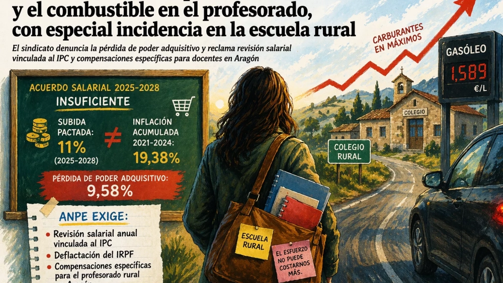 El sindicato ANPE ha alertado del impacto de la inflación y del encarecimiento del combustible sobre el profesorado, con especial incidencia en la escuela pública rural en Aragón, y ha reclamado la adopción de medidas específicas para compensar sus efectos.