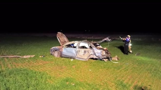 Los Bomberos de Huesca han informado de que el accidente se produjo pasada la zona de la gasolinera en la A-131 en sentido Fraga y tras el impacto en la vía uno de los vehículos, en el que viajaban dos adultos y un niño, se salió de la calzada y cayó en un campo a unos 2 metros de altura, dando varias vueltas de tonel.