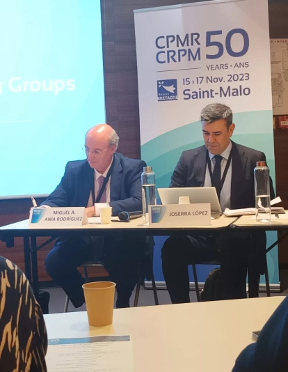 Miguel Ángel Anía ha realizado dos intervenciones en el Grupo de Trabajo del Comité de Transporte de la CRPM y, además, ha podido explicar de primera mano la apuesta por la reapertura del Canfranc a la secretaria general de la CRPM, Eleni Marianou, la máxima autoridad de este foro.