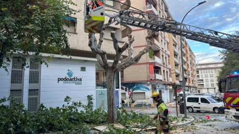Por este motivo, los bomberos han procedido a rebajar la copa del árbol con el fin de reducir su peso y minimizar el peligro de caída, completando la intervención sin incidencias.