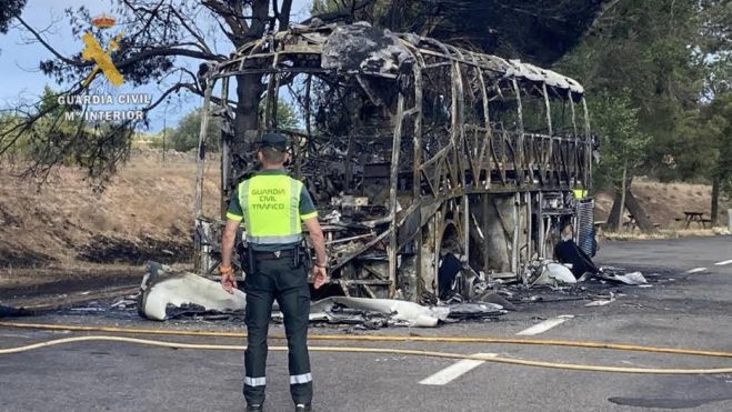 Según informa la Guardia Civil, sobre las 17.10 horas de la tarde el 112-SOS Aragón ha informado de que en la AP-2, en el término de Torrente de Cican, había un autobús ardiendo, de una empresa que transportaba a 63 pasajeros adultos entre Mequinenza y Ricla.