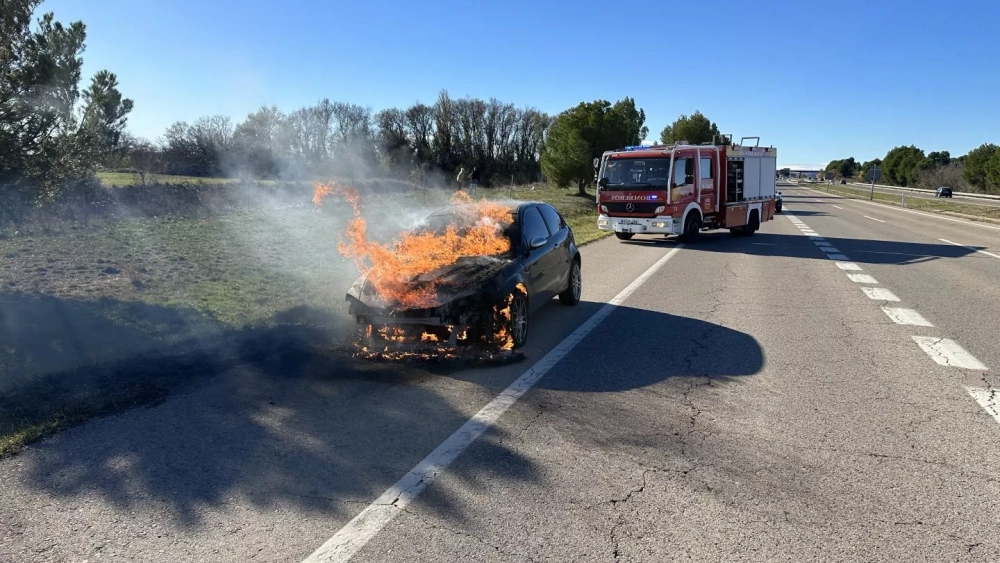 Un vehículo ha comenzado a arder mientras circulaba este sábado por la A-23, sin que se hayan producido heridos.