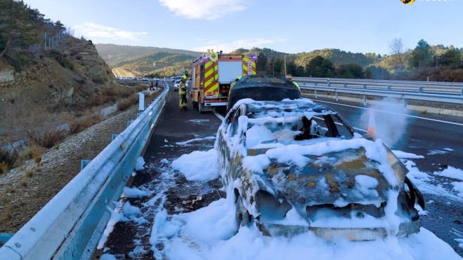 Un vehículo se ha incendiado este miércoles en la A-23 en Monrepós sin causar daños personales. La vía ha estado cortada durante unos 20 minutos mientras se procedía a la extinción del fuego.
