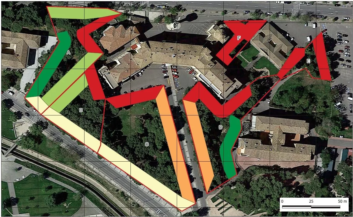 Las zonas de actuación se señalizarán y asegurarán para evitar el paso, si bien el acceso al hospital no se verá afectado, salvo, de manera puntual, en jornadas de tardes, cuando no será posible la circulación de vehículos y peatones en algunos espacios del recinto, aunque siempre habrá un acceso alternativo de entrada y salida al hospital.