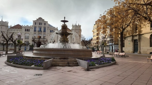 En las ciudades, en ocasiones, si somos capaces de aprovechar la fugacidad del ocaso diario, podemos disfrutar de imágenes inspiradoras, como ha sucedido este jueves en la Plaza de Navarra, en la que un recorrido con la cámara nos permite recrearnos en la armonía cromática del cielo, de la bonita arquitectura civil de edificios como el Casino Oscense y de las primeras luces de la noche en unas farolas que parecen despertar poco a poco, para no molestar el instante. Los matices embriagan la vista y el alma.