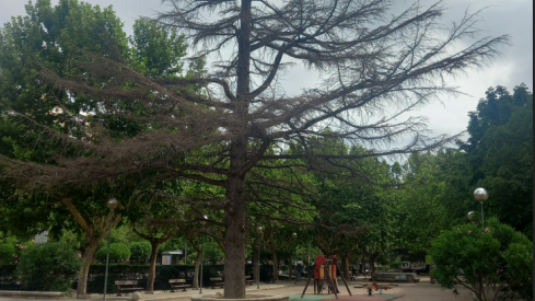 La conífera, de momento, no supone ningún riesgo porque su secado es muy reciente, sin embargo, la tala es precisa para prevenir que cualquier inclemencia meteorológica (viento, tormenta…) provoque que se rompan y caigan algunas ramas.