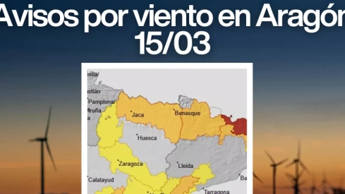 Asimismo, se mantiene aviso amarillo por viento en Albarracín y Jiloca y en el Bajo Aragón, así como en las Cinco Villas y la Ribera del Ebro, donde se prevén rachas intensas entre las 00.00 y las 19.00 horas.