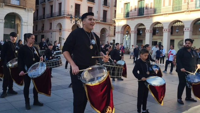 La plaza López Allué se ha llenado este martes 8 de abril del sonido inconfundible de la Banda de Bombos y Tambores de la Cofradía del Santo Cristo de los Gitanos, que ha celebrado el Día del Pueblo Gitano con una actuación muy especial en el marco de la Semana Cultural de la Asociación de Vecinos del Casco Viejo "Osce Biella".