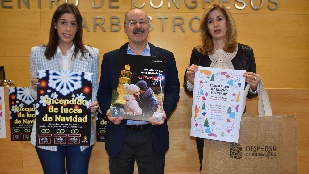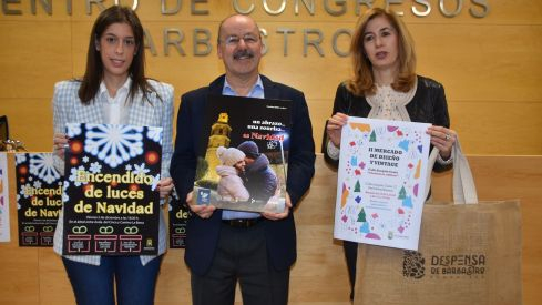 El encendido de las luces navideñas abrirá este viernes, 2 de diciembre, el programa de actividades navideñas en Barbastro, en el que destacan el Mercado de Navidad que la Asociación de Empresarios Somontano Barbastro celebrará este domingo, 4 de diciembre, o el II Mercado de Diseño que el Área de Desarrollo del Ayuntamiento de Barbastro organizará el sábado 10 de diciembre. Son algunas de las actividades que este miércoles han detallado en rueda de prensa las concejalas Lorena Espierrez y Belinda Pallás, responsables de las áreas de Fiestas y Desarrollo, respectivamente, y el presidente de la Asociación de Empresarios Somontano Barbastro, José Antonio Pérez Asensi.