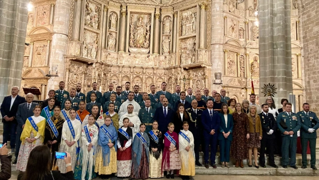 Con ellos, el consistorio presidido por Fernando Torres, y acompañándoles las Damas Mayores e Infantiles que constituyen una representación de la juventud acrisolada por la tradición. Naturalmente, el componente de la jota hecha oración y convertida en tributo a quienes tanto dan sin pedir apenas nada. La fotografía final tras la Eucaristía ha simbolizado la unión, el respeto y la justicia hacia la Guardia Civil, la institución que anhelan los pueblos en los que falta, la que cuidan los afortunados por lo que representa.