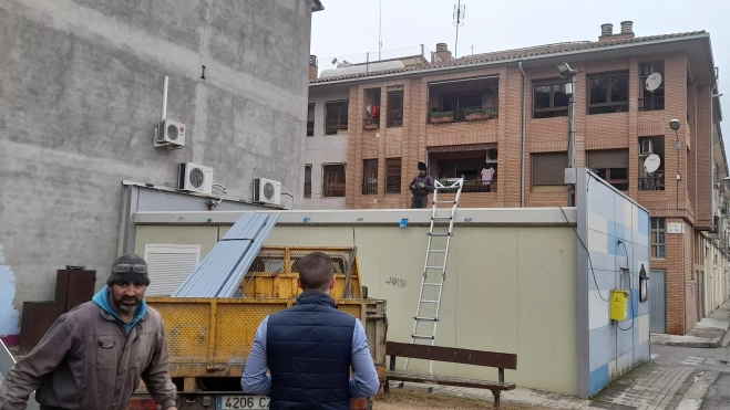Los trabajos permiten sustituir la actual cubierta horizontal por otra metálica a dos aguas y en chapa de acero que se ha construido este otoño en los talleres de la empresa adjudicataria del contrato, y la inversión total asciende a 14.256 euros. La actuación se completará antes de diciembre y permitirá eliminar las filtraciones que complicaban el uso de este espacio comunitario.