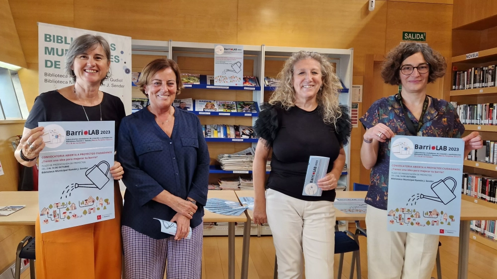 Las propuestas se deben presentar en la Biblioteca Municipal Ramón J. Sender, donde este viernes se ha celebrado una rueda de prensa para dar todos los detalles de esta nueva citación del Barriolab. Han intervenido las concejalas de Cultura y de Participación Ciudadana del Ayuntamiento de Huesca, Teruca Moreno y Susana Oliván, respectivamente, la responsable de la empresa Info.Doc que gestiona las bibliotecas municipales, Alicia Rey, y la directora de la Ramón J Sender, Arancha Añaños.