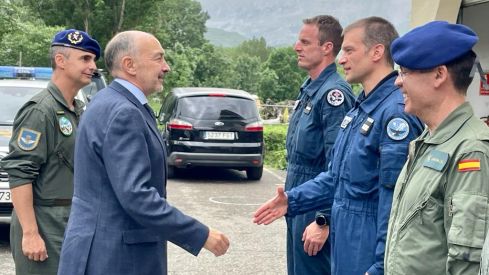 Beltrán ha visitado junto al teniente coronel Francisco Pulido el acuartelamiento, donde en los meses de verano, junto al puesto, se ubica el hangar del destacamento eventual de la unidad aérea en Benasque para rescates de montaña. Beltrán ha asistido a un simulacro de rescate junto al jefe de la Unidad Aérea de Huesca, Alberto Rodríguez.