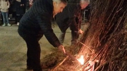Tras el encendido se han repartido a todos los asistentes seiscientos bocadillos de chorizo y salchichón (más de treinta para celíacos) acompañados del vino correspondiente, preparados por voluntarios que cada año se prestan para su elaboración.