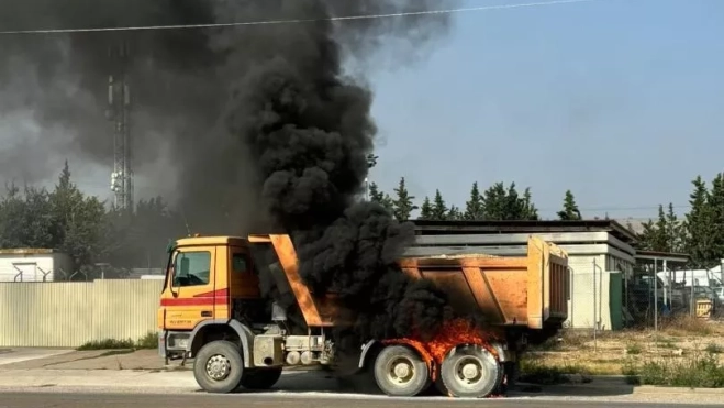 Bomberos de Huesca han sofocado el fuego en un camión dumper de obra que se encontraba en la Ronda Industria. La intervención se ha realizado entre las 17.15 y las 17.50.