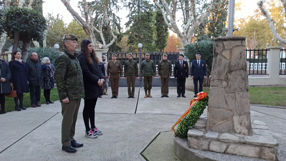 Al acto asistió también el coronel jefe de la Residencia Militar, Roberto Flavian, el teniente coronel jefe de la USAC Sancho Ramírez, Javier Moreno, y el presidente de la Asociación de Soldados Veteranos de Montaña, Miguel Juliá, entre otros jefes de unidad militares. Guadalupe Campo ha sido la encargada de izar la bandera; mientras que Sara Comenge, junto con el subdelegado de Defensa, coronel Rafael Matilla Páramo, ha depositado la corona de laurel en el monolito, en homenaje a los que dieron su vida por España.