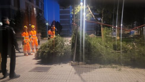 En este mismo lugar sin protección, hace unas semanas se precipitó otro pino y coincide con los trabajos de recuperación de la zona de Torremendoza, en la confluencia de Danzantes, Obispo Pintado y Ramón J. Sender. Los vecinos se han visto alertados por el estruendo del derrumbe del tremendo ejemplar.