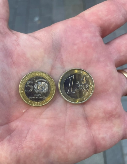 Un cambiazo, una tienda, un bar, probablemente no te das cuenta hasta que descubres que el euro que te habían entregado tiene un escudo distinto, desconocido, y que aparece en la leyenda central "5 pesos dominicanos", y en el aro exterior "República Dominicana 2017".