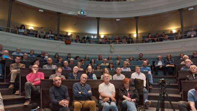 Quien ha introducido, José Luis Trasobares, ha concluido manifestando los vectores de naturaleza económica que empujan la unión de estaciones, asimilables a los que han regido al Real Zaragoza. "Quieren multiplicar sus posiciones. Aspiran a manejar Ramón de hoz y coz, con dinero público, porque pasta de la suya no ponen nunca. Y contaban con que no habría debate social. No hay más que ver esta sala repleta. Se han equivocado".
