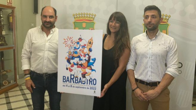 La autora barbastrense, afincada en Monzón desde hace diez años, ha ganado el concurso del cartel anunciador y compartido sus impresiones en la rueda de prensa en la que ha estado acompañada por el alcalde de Barbastro, Fernando Torres, y el concejal de Fiestas del Ayuntamiento de Barbastro, Jesús Garcés.