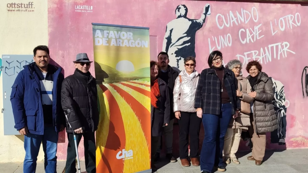 Verónica Villagrasa, candidata número 1 de CHA por el Alto Aragón, acompañada por otros candidatos y candidatas, ha realizado en el Paseo de la Muralla de Huesca un balance de la campaña electoral.