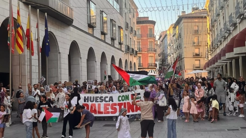 Centenares de personas se han manifestado este sábado en Huesca para exigir el fin del genocidio contra el pueblo palestino. La convocatoria, impulsada por la Red Solidaria contra la Ocupación de Palestina, ha reunido a una media de 400 asistentes, aunque en algunos momentos se ha superado el medio millar.