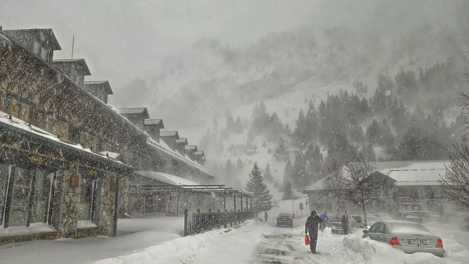 Para este lunes, el aviso de la Aemet es amarillo por nevadas en el Pirineo, con una acumulación en 24 horas de 5 centímetros. Se esperan precipitaciones débiles o moderadas al inicio, que irán perdiendo intensidad al avanzar el día, a la vez que van quedando restringidas al entorno de la divisoria, donde serán más persistentes. Cota de nieve se sitúa en 800 metros y baja hasta el fondo de los valles.