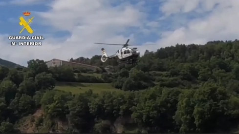 Un minuto más tarde, se comunicaba que una senderista ha sufrido una posible fractura de peroné al caer tras resbalar en la senda del Salto de Roldán (Nueno). Greim de Huesca, Unidad Aérea de Huesca y médico del 061, evacuan en el helicóptero a la mujer de 57 vecna de San Sebastián hasta el Hospital San Jorge.