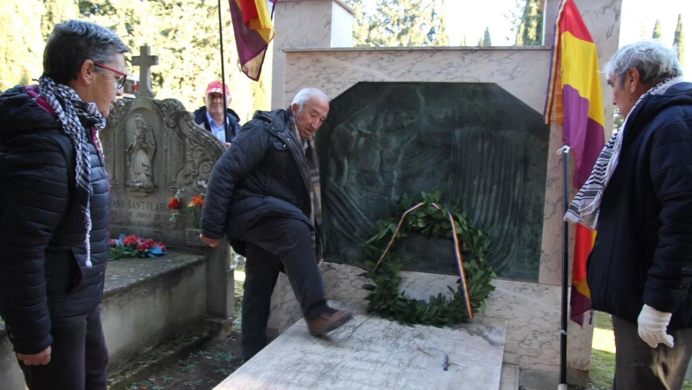 Posteriormente, los asistentes accedieron al nicho de Ángel García, depositando en el mismo una corona. Tuvieron, además, unas palabras de recuerdo para Eugenio Longás, chófer en la gesta de aquel día.