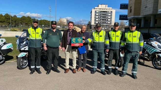 Nico Alonso, Nino Gracia y Paco Ramírez han entregado, en nombre de los 340 miembros del club, la placa -diseñada y creada por Nino Alonso- al teniente coronel José Enrique Cordobés Lucena y el capitán José Ramón López Platero. Los representantes del Cuerpo han agradecido el tributo del club muestra de la integración desde hace 180 años en la provincia de Huesca como un territorio especial de España.