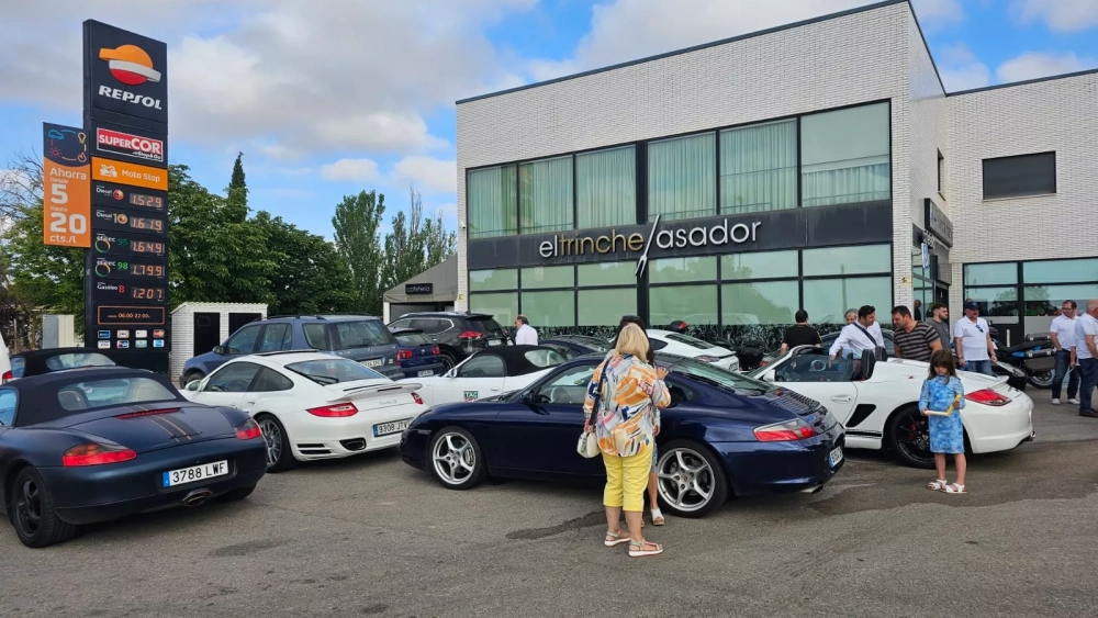 La gasolinera de la salida de Huesca (junto a El Trinche) se ha poblado desde las nueve de la mañana de coches espectaculares con un punto en común: todos son Porsche. Es la anual cita del Club Porsche Aragón en la capital oscense para recorrer dos centenares de kilómetros disfrutando del paisaje, esto es, sacrificando la endiablada velocidad de estos automóviles por el deleite del entorno.