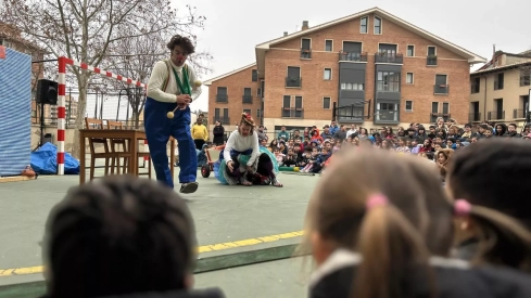 El Colegio Público San Vicente celebró recientemente su fiesta anual en vísperas del copatrón de Huesca, en colaboración con la Amypa. La jornada incluyó una deliciosa chocolatada para todo el alumnado, compuesto por aproximadamente 370 estudiantes, y contó con la actuación de la compañía Monopajaroverde, que presentó su espectáculo "A comer...!!!".