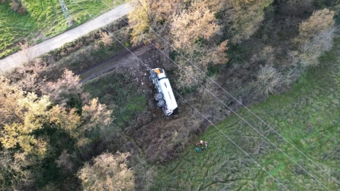 Un camión con 10.900 kilogramos de gas propano volcó fuera de la vía en una pista cercana a Guaso, en Aínsa, lo que activó el Plan Especial de Protección Civil para accidentes con mercancías peligrosas en Aragón (PROCIMER). Aunque no se registraron heridos ni fugas, la carga representaba un riesgo considerable, lo que motivó una compleja operación de rescate por parte de los bomberos de la Diputación Provincial de Huesca (DPH).