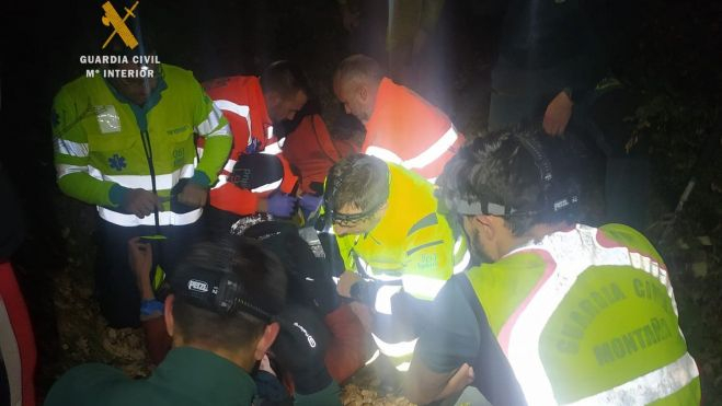 Agentes de la Guardia Civil del Greim de Boltaña se aproximaron en vehículo lo máximo posible hasta una pista forestal desde donde iniciaron el ascenso a la vertiente sur del pico Castillo Mayor. Desde allí tuvieron que caminar unas dos horas hasta llegar al accidentado y su acompañante.