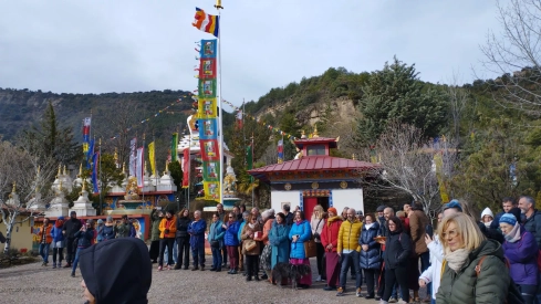 El acto ha comenzado este sábado a primera hora en el templo, con ofrenda de katas y desayuno tibetano. También se recita la práctica de Milarepa, junto a toda la comunidad reunida en el templo. Ya este domingo, momento para recitar un compendio de plegarias de aspiración que forman parte de una gran colección de palabras del mismo Buda preservadas en el Kangyur.