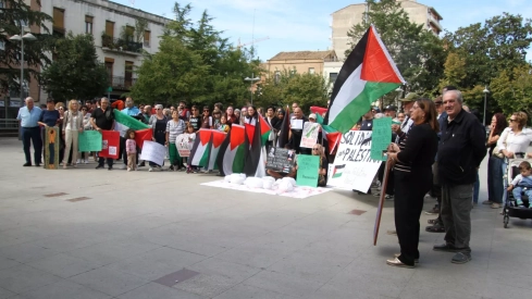 "Hoy nos reunimos en esta plaza de Binéfar para levantar nuestras voces frente a una tragedia que avergüenza a la humanidad. Lo hacemos en defensa de la vida, de la dignidad humana y del derecho de los pueblos a existir libres, condenando con firmeza el genocidio del Estado de Israel contra el pueblo palestino".