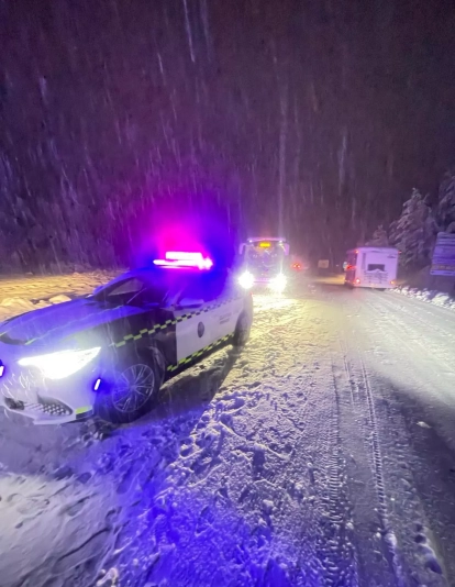 A las 17 horas, en el punto kiométrico 6 de la A-2606 entre Panticosa y Balneario de Panticosa, se ha personado un destacamento de la Guardia Civil en tareas de vigilancia por la concurrencia del nivel rojo por nevadas que restringe la circulación por determinadas vías de la provincia para autobuses y vehículos pesados sin autorización y con obligatoriedad del uso de cadenas neumáticos de invierno para los turismos.