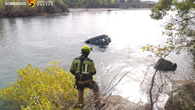 El único ocupante del vehículo que ha caído al río Cinca ha podido salir por si solo y ha nadado hasta la orilla. El Greim de la Guardia Civil, con la colaboración de los bomberos, ha ascendido al herido, que ha sido atendido in situ por personal sanitario del 061 y trasladado en ambulancia medicalizada al Hospital de Barbastro.