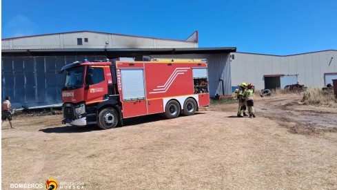 El fuego se originó en torno a las 13.30 horas del lunes en una pajera situada en el exterior de una nave industrial, y se propagó posteriormente al interior de la misma, dañando otra pajera y una máquina industrial. Poco después, los efectivos también tuvieron que intervenir en un segundo foco, un incendio de rastrojos en una cuneta a unos 300 metros del polígono.