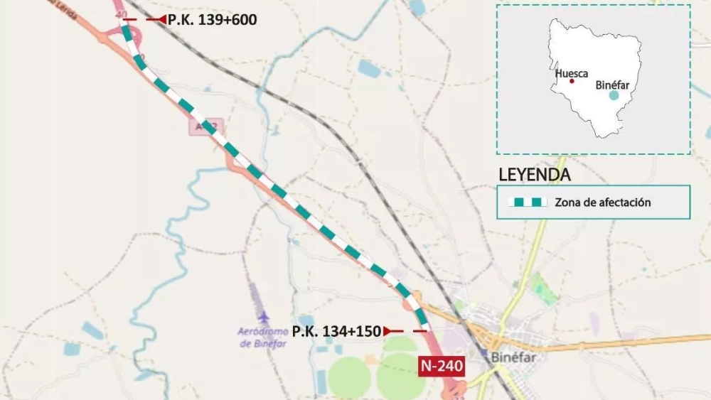 Así, a partir de las 10.00 horas del lunes 8 de julio, la circulación entre los kilómetros 139,600 en Monzón y el 134,150 en Binéfar se restringirá y sólo estará permitido el acceso a las fincas colindantes y la circulación de maquinaria agrícola. Esta restricción se prolongará hasta el día 16 de agosto.